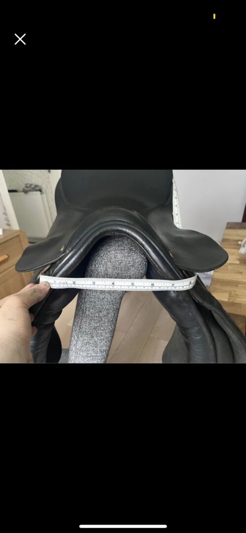 17" Sitz, 8" D-Ring zu D-Ring. (XW-Schulterstück) Er hat einen Spring Tree innen. Hat eine Marke auf der Rückseite des Sitzes, aber es hat keinen Einfluss auf den Sattel und könnte leicht neu gefärbt werden. Wurde abgewischt und gereinigt, da er im Lager saß, da er viel zu groß für meinen kleinen Cob mit kurzem Rücken war.
