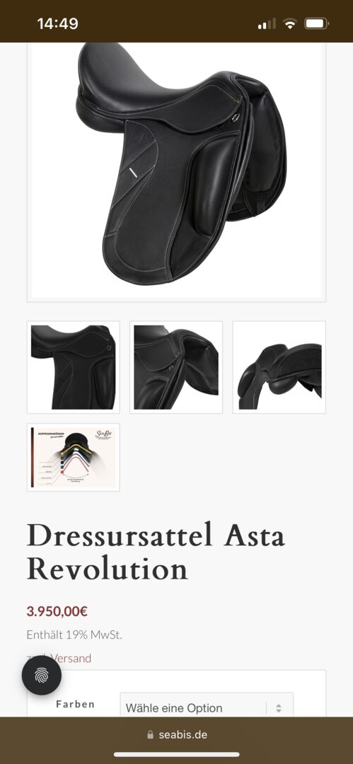 Selbstverständlich wird der Sattel mit entsprechendem Seabis Sattelschoner weitergegeben.