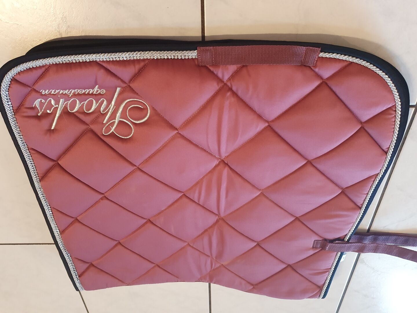 - Dressurschabracke von Spooks mit Glitzer, war nur 2x am Pferd und ist in super Zustand, natürlich frisch gewaschen, aber es sind ein paar Haare hängen geblieben - 4- er Set Bandagen von Eskadron in WB im Farbton rouge. 2 Stück sind komplett neu, die anderen beiden waren kurz für Fotos am Pferd - Fliegenhaube von Eskadron für WB in rouge mit Glitzerstein-Verzierung, war 2x am Pferd und ist super erhalten. - Hufglocken von Eskadron in rouge, Gr. L. Waren 2x am Pferd (Barhufer) und haben keine großen Macken abbekommen, sind allerdings in der Wäsche nicht ganz sauber geworden. - Gamaschen von Eskadron in Größe L, ebenfalls im Farbton rouge