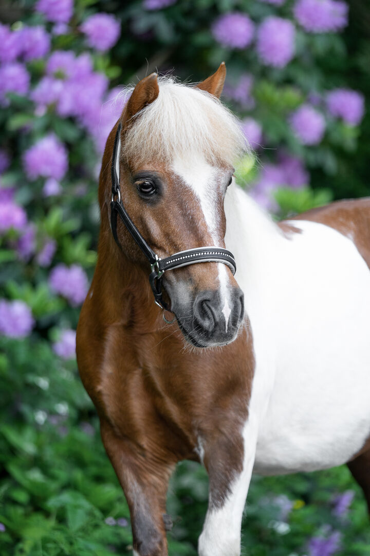 Sissi ist eine 1,05cm große Shettystute. Sie super verträglich mit anderen Pferde. Die letzten 2 Jahre stand sie mit Isländern zusammen, wo sie sich immer sehr wohl gefühlt hat aber auch mit anderen Pferden kommt sie gut klar. Sie ist ein wenig empfindlich bei schnellen Bewegungen und hatte viele Jahr mit Übergewicht zu kämpfen, wodurch sie teilweise eine Fressbremse tragen muss, mit dieser sie aber sehr gut zurecht kommt. Sie ist allem gegenüber aufgeschlossen und freut sich über viel Aufmerksamkeit.