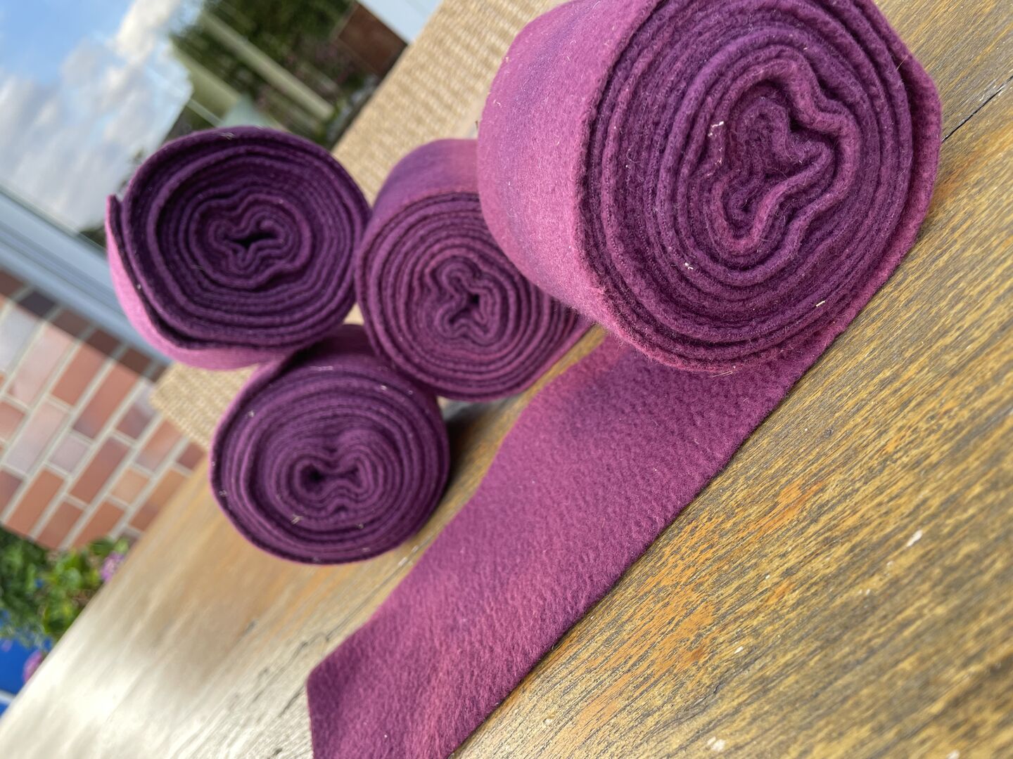Die Bandagen wurden für ein Holzpferd genutzt. Sie sind an manchen Stellen etwas ausgeglichen. Aufgewickelt am Pferdebein sieht man diese Stelle nicht. Werden in Originalverpackung verschickt Größe: Pony