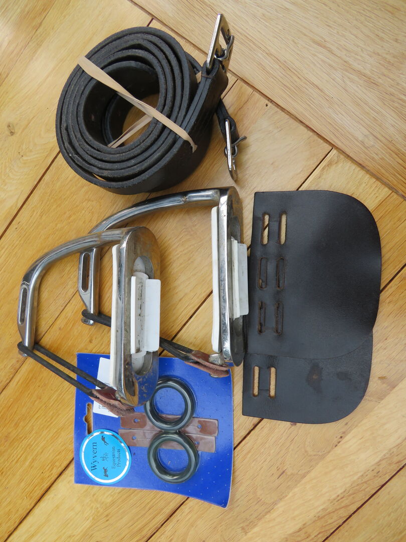 Sicherheitssteigbügel mit Ersatz-Pfauenringen und -Ledern