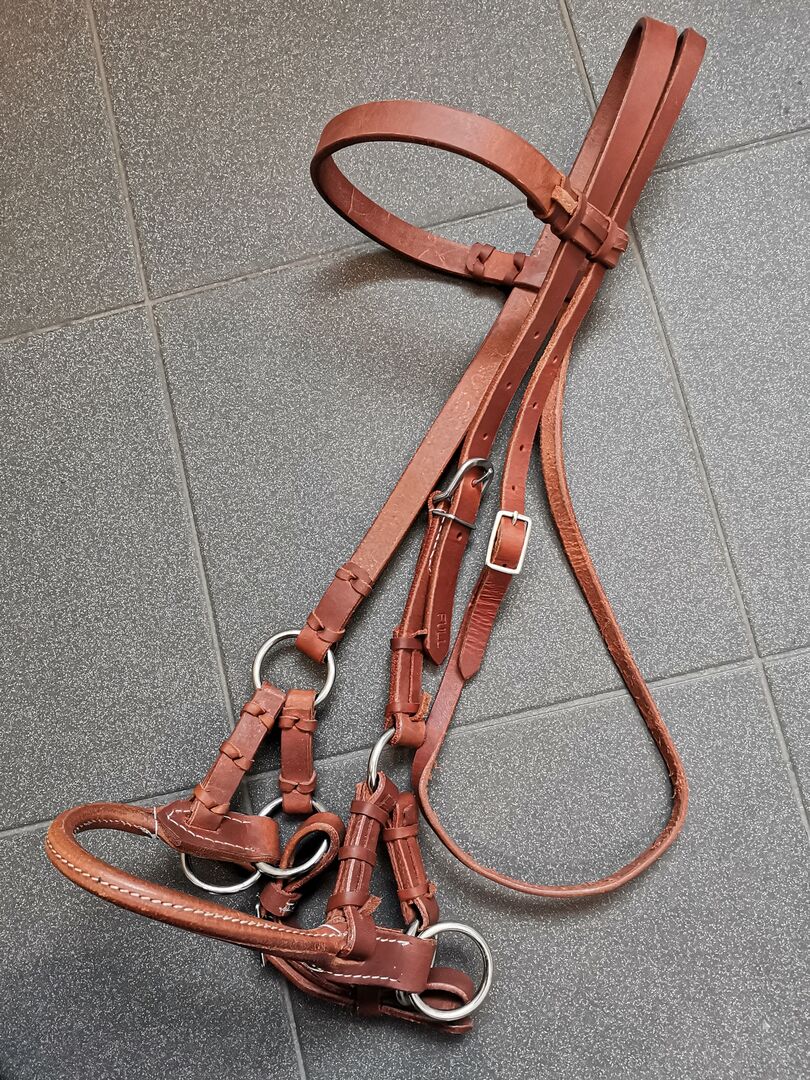 Sidepull, Grösse Full für etwas grössere Pferdeköpfe, Farbe ein schönes mittelbraun, weiches Leder mit Pferdefreundlichem Nasenriemen. Kaum genutzt. Privatverkauf, keine Garantie, keine Rücknahme.