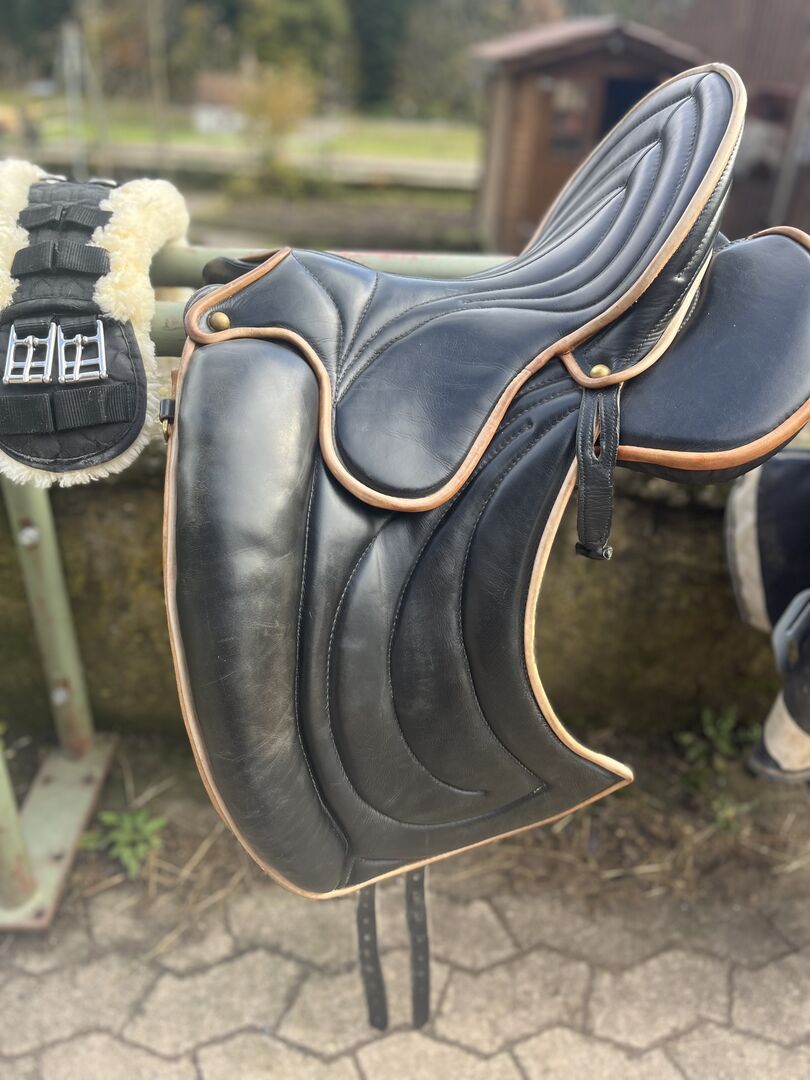 Der Sattel lag einige Zeit auf einem PRE Hengst mit hohem Widerrist. Hier hat er sich gut angepasst und war bequem zu sitzen.