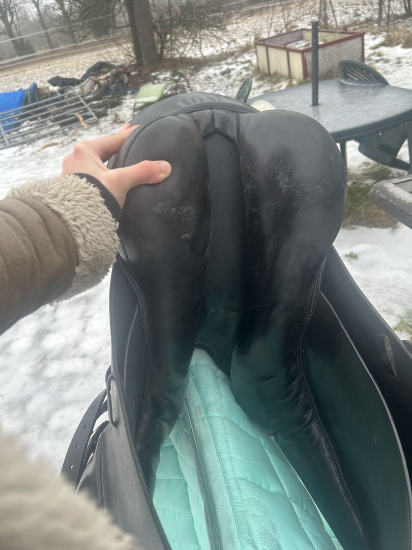 Er hat normale Gebrauchsspuren, ich weiß nicht genau welches Modell es ist, da ich ihn so von meiner Trainerin übernommen habe, kann also auch nicht sagen wie alt der Sattel ist.