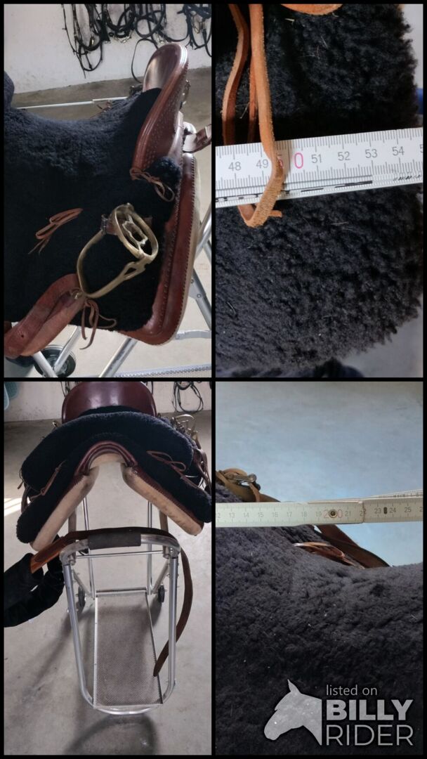 Hallo, wir verkaufen unseren spanischen Sattel von Bentaiga aus der spanischen Hofreitschule. Maße siehe Bilder, Gesamtlänge ist circa 54 cm, er lag bei uns auf einem P.R.E. Der Fellbezug kann über die Lederriemen zur Reinigung abgenommen werden. Der originale Bauchgurt, wie auch die originalen