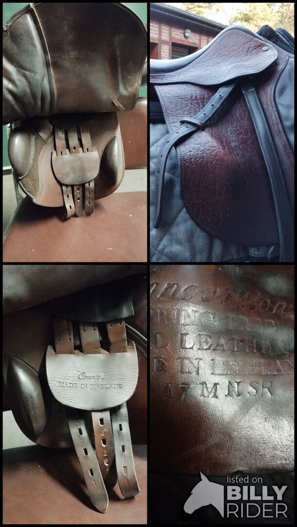 Gut erhaltener Springsattel von County. Der Sattel ist ca. 10 Jahre alt und gut gepflegt. Vor 1,5 Jahren wurde er neu gepolstert. Liegt auf fast jedem Pferd. Passende Bügelriemen, einen schwarzen Sattelgurt aus Neopren, Steigbügel und einen Sattelschoner gibt es dazu