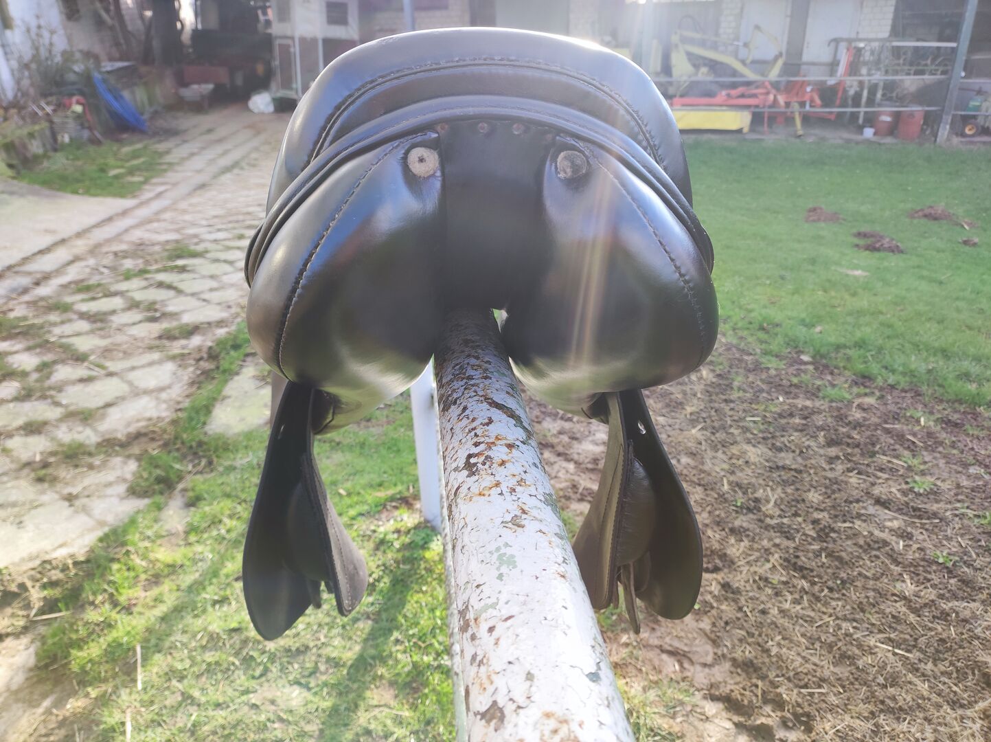 Verkaufe hier meinen gebrauchten Springsattel von Jorge Canaves Modell Tango Spring. Sitzfläche 17,5 Kammerweite müsste 33 sein. Der Sattel hat wie auf den Bildern zu erkennen Gebrauchsspuren. Diese habe ich so gut wie möglich versucht zu Fotografieren. Die Sitzfläche ist völlig intakt nur das Oberleder ist etwas rissig, wie auf den Bildern zu sehen. Wenn mich nicht alles täuscht, müssten das Bananenkissen sein. Der Sattel wurde letztes Jahr noch einmal umgepolstert, aber nicht die ganze Polsterung gewechselt. Die Polsterung ist weich und in Ordnung. Die Wadenpauschen lassen sich per Klett verstellen.