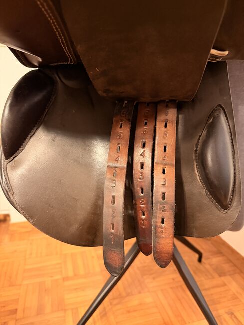 17 Zoll, in elegantem dunkelbraun mit weiß abgesetzt, keine 2 Jahre alt, GRP SLIM“ = schmaler Glasfaser-Sattelbaum „für schmale Becken / kleinere Reiter (häufig Frauen)“ . Kammerwrite 2 (mittel). super Kontakt zum Pferd, ultra weiches Leder. NP 2400. Versand oder Abholung in 72270 Baiersbronn oder 51688 Wipperfürth