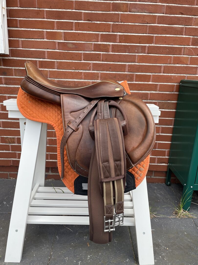 Springsattel. Da ich ihn selbst gebraucht gekauft habe, kann ich keine Angaben zum Alter oder Neupreis machen. Er ist in gutem Zustand, technisch einwandfrei, Gurtstrippen, Polsterung und Klettpauschen sind noch top. Lediglich das Leder ist optisch nicht mehr einwandfrei. Leider zu breit für meine Stute. Bei Zahlung des Festpreises inklusive Steigbügeln, Steigbügelriemen und fast neuem Gurt.