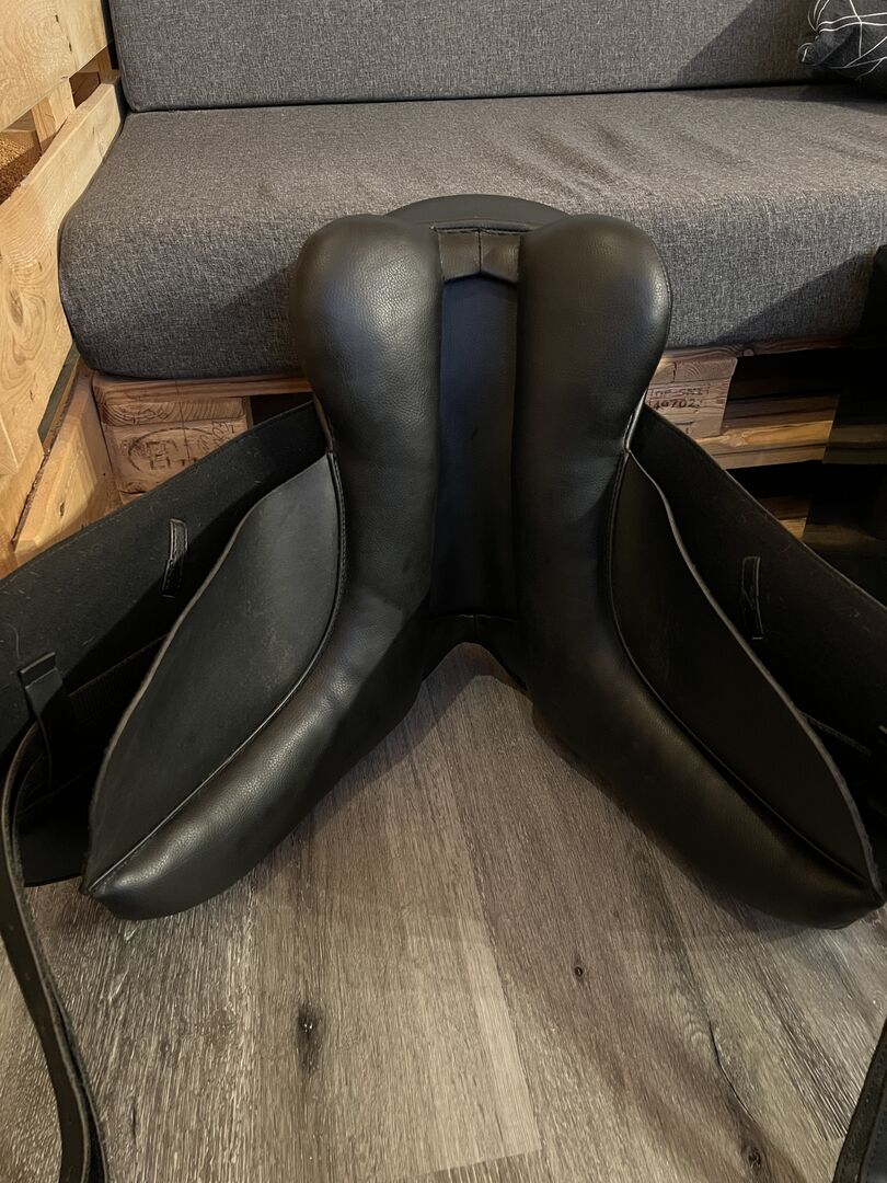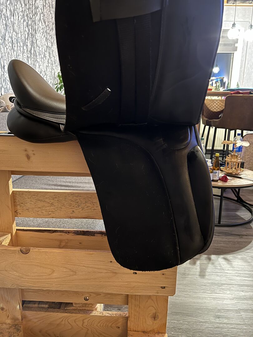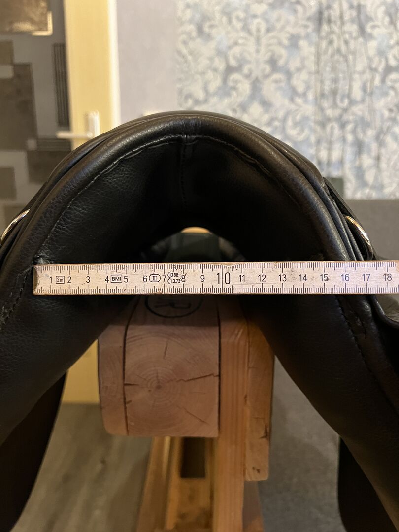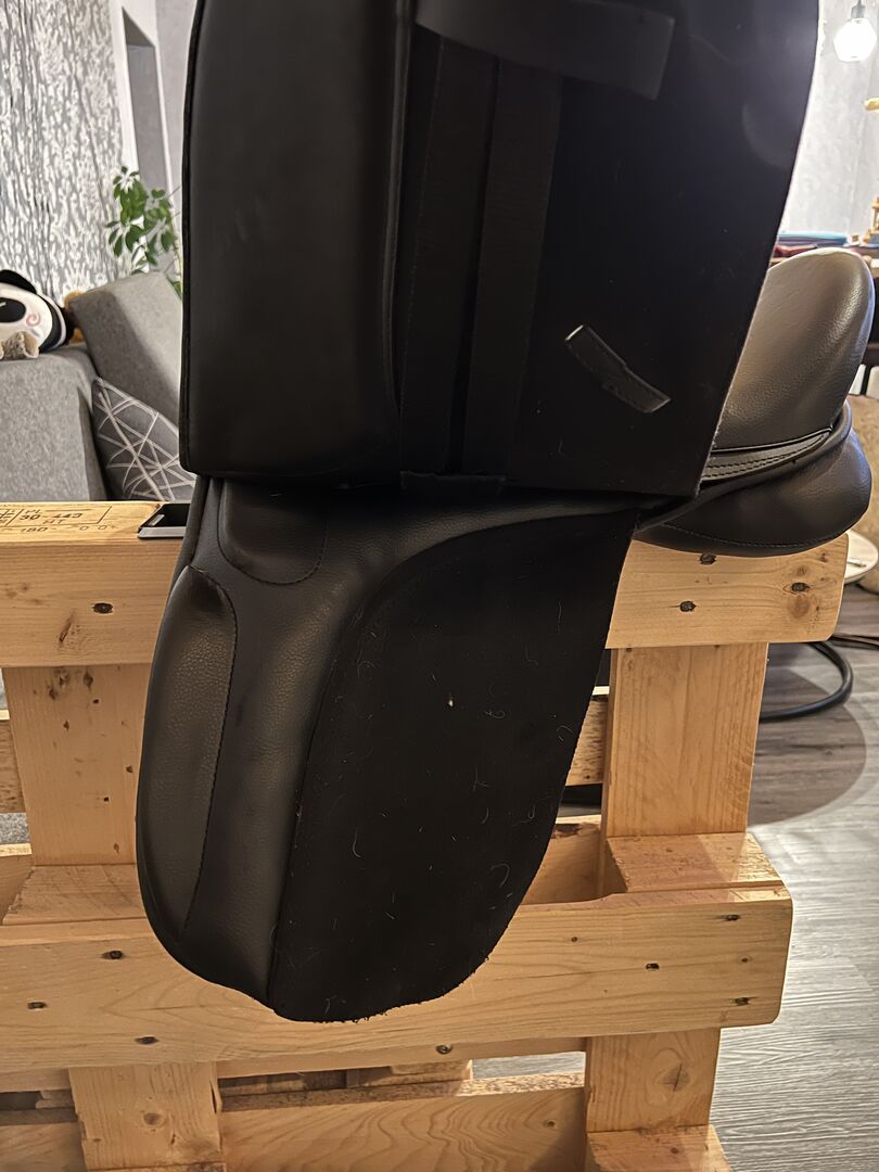 Dressursattel in 17,5“. Der Sattel ist im neuwertigen Zustand, da er selten sehr genutzt wurde. Das Material ist ein absolut pflegeleichtes Kunstleder und lässt sich auch super einfach mit Wasser und etwas Seife reinigen oder man wischt einfach mit einem feuchten Lappen drüber und schon ist er wieder schön. Der Sattel wurde natürlich gereinigt, damit er sofort einsatzbereit ist. Der Sattel ist geeignet für Pferde mit einem mittleren Widerrist und geradem Rücken.