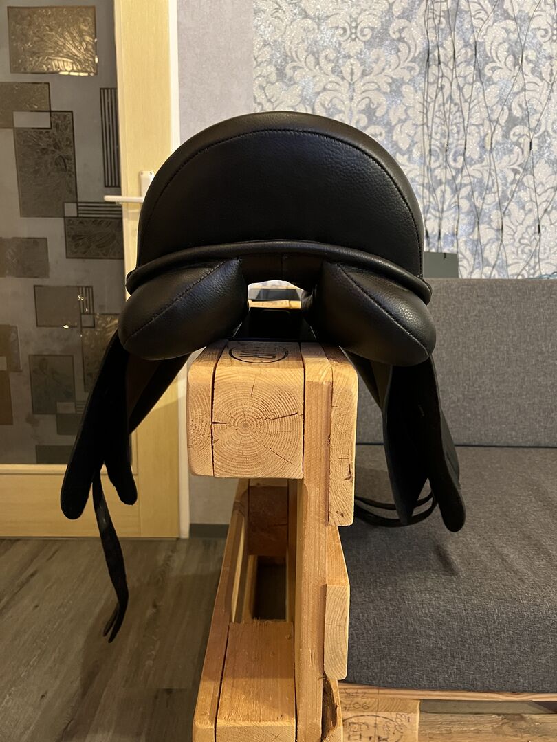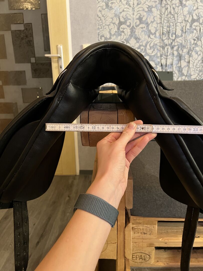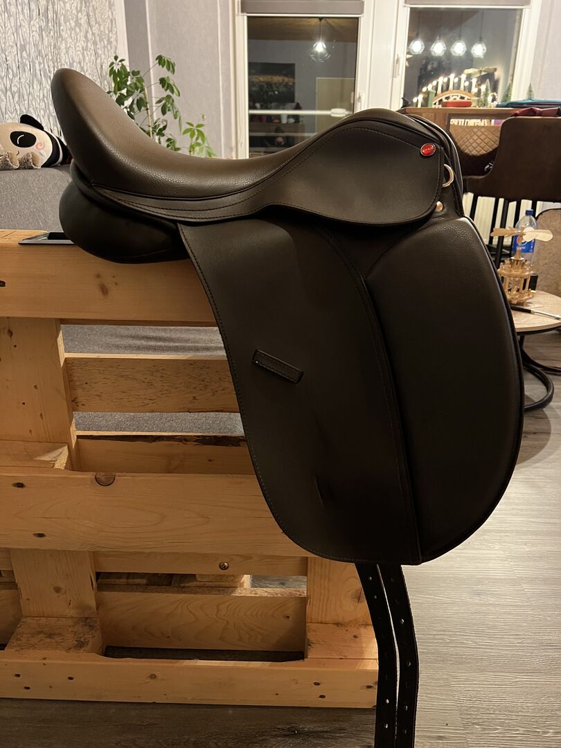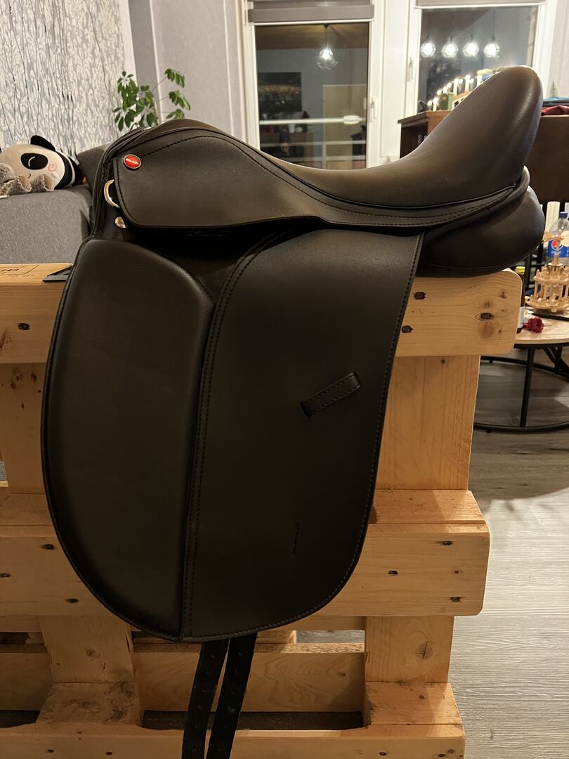 Dressursattel in 17,5“. Der Sattel ist im neuwertigen Zustand, da er selten sehr genutzt wurde. Das Material ist ein absolut pflegeleichtes Kunstleder und lässt sich auch super einfach mit Wasser und etwas Seife reinigen oder man wischt einfach mit einem feuchten Lappen drüber und schon ist er wieder schön. Der Sattel wurde natürlich gereinigt, damit er sofort einsatzbereit ist. Der Sattel ist geeignet für Pferde mit einem mittleren Widerrist und geradem Rücken.