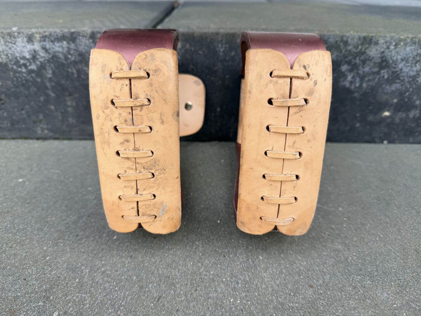 - Hochwertige Ledertrittfläche unten verschnürt.