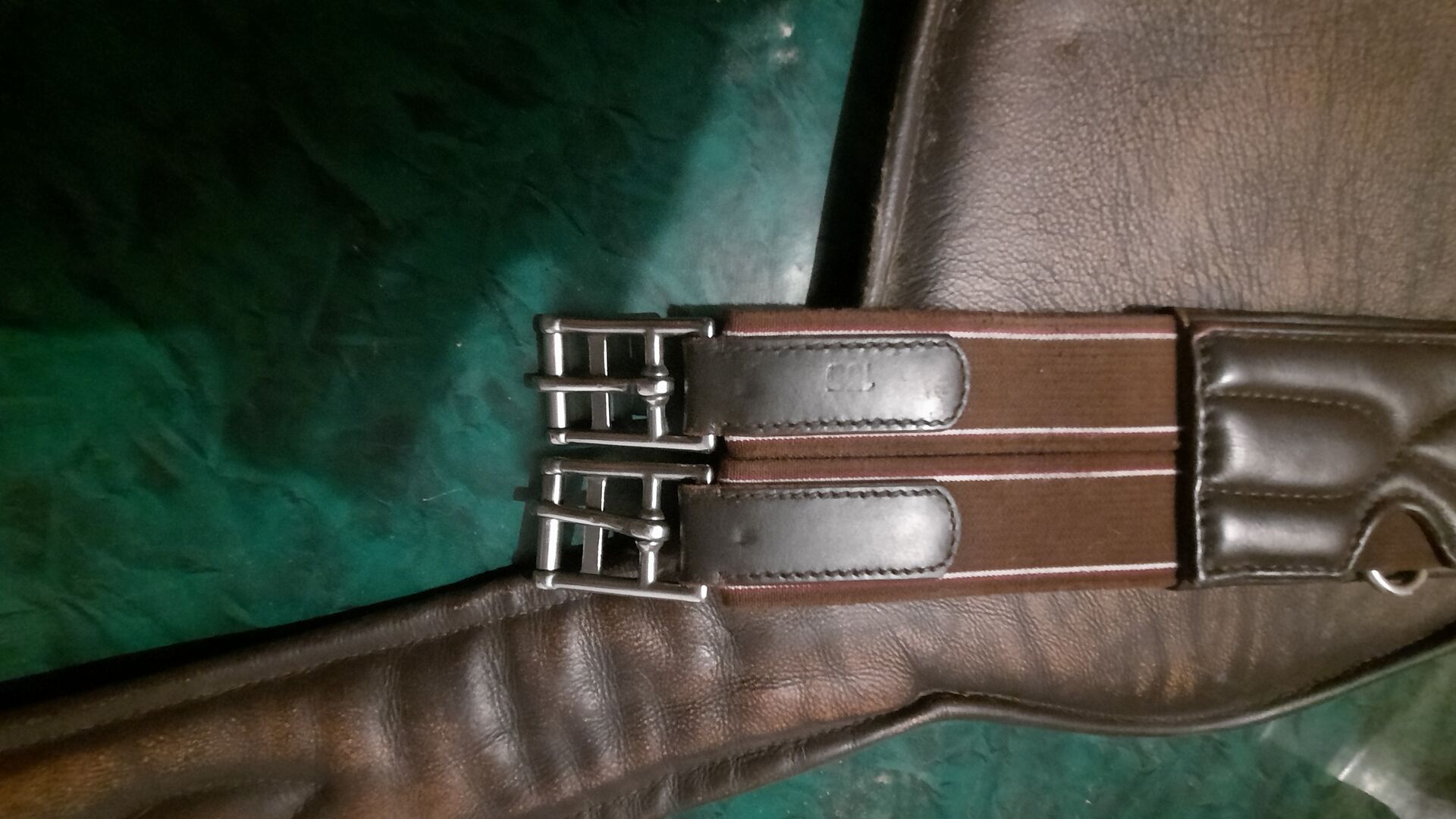 Verkaufe meinen Stollengurt, gut gebraucht, das Leder an der Innenseite schon etwas Farbe verloren. Wie auf dem Bild zusehen, auch mit Gebrauchsspuren, ein Riss vom Stollen. Länge 140cm Braun, beidseitige Gummizüge und Rollenschnallen mit Karabinerhaken für Vorderzeug, sonstiges Paypal möglich
