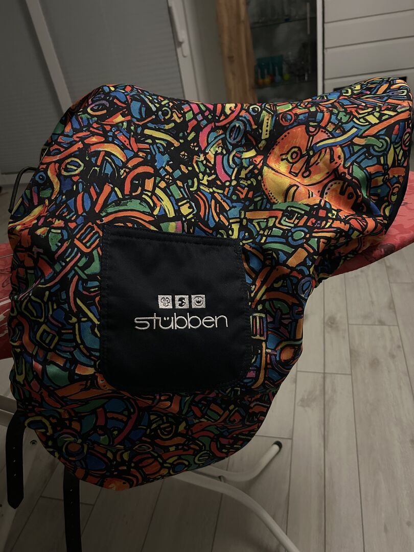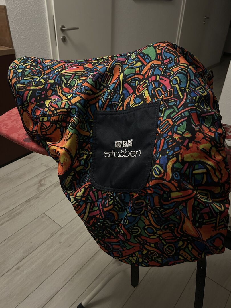 Mit dem bunten Sattelschoner von Stübben