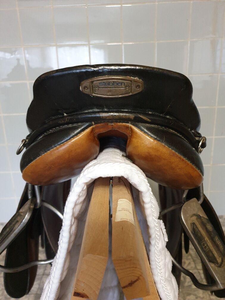 Der Sattel hat eine kleine Druckkerbe (Leder nicht gerissen) an der Kante des Efters (siehe Fotos). Das Leder hat an den üblichen Stellen Abriebspuren (siehe Fotos) und das Leder an den Pauschen ist aufgeraut, die Pauschen sind aber intakt.