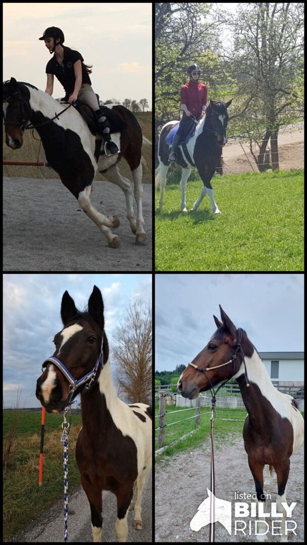 Für meine 20 jährige Warmblut-Pony-Mix Stute suche ich eine zuverlässige Reitbeteiligung. Sie ist 152 cm groß, eine hübsche Schecke und sehr brav im Umgang. Mit ihr ist vieles möglich: von Bodenarbeit bis hin zu gemütlichen Ausritten. Sie wird freizeitmäßig geritten, sowohl englisch als auch western (derzeit habe ich nur einen Westernsattel und ein Pad für das Reiten ohne Sattel). Wir stehen in einem kleinen Stall in Krexham (4624 Pennewang) mit einem Reitplatz und einem schönen Ausreitgelände.