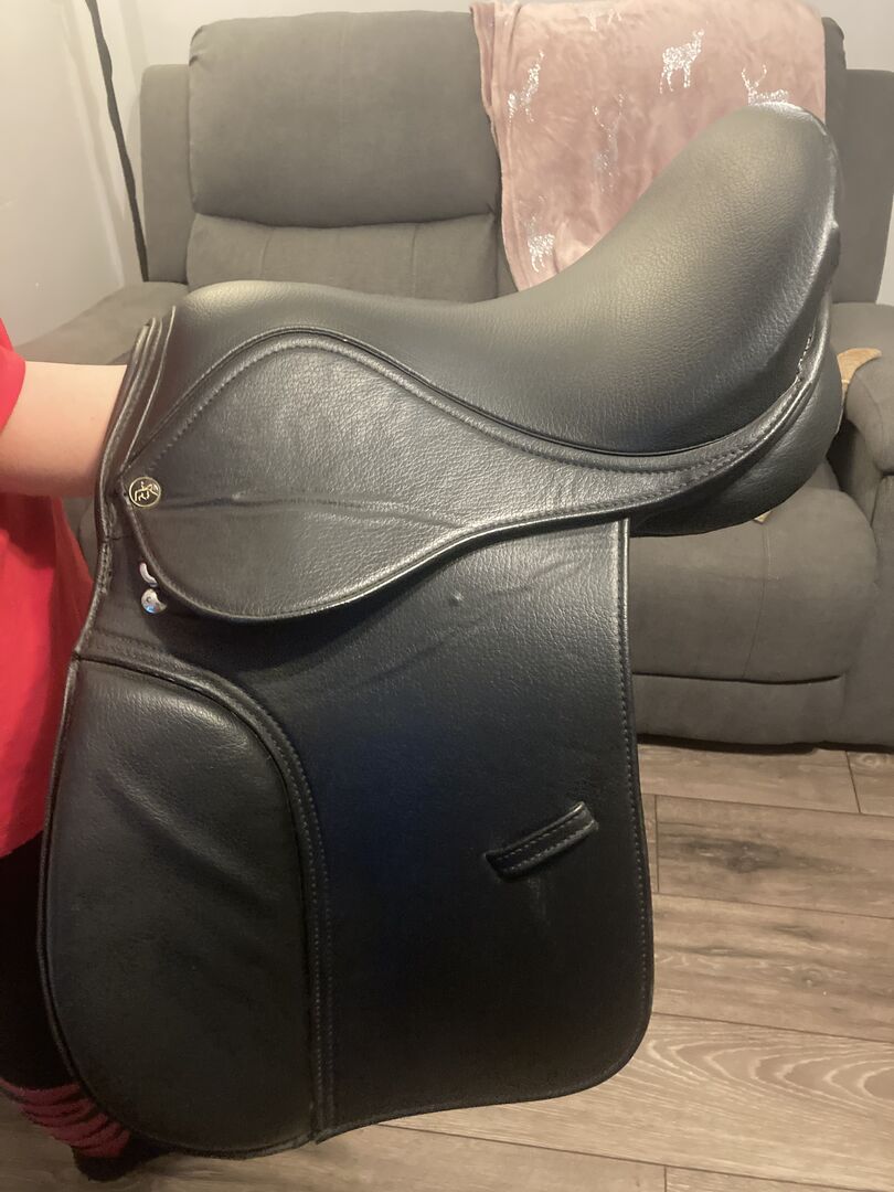 Allzweck-Sattel aus Kunstleder, 15 Zoll, breite Passform, schwarz.