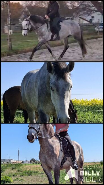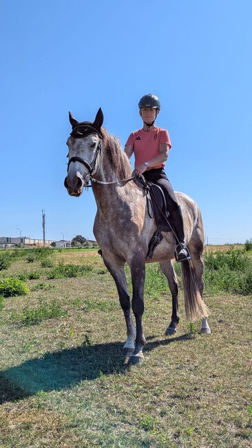 Remate Rae "Willi" ist ein bildschöner Lusitano-Wallach, geboren 2021, mit einem Stockmaß von ca. 157 cm und in edler Schimmelfarbe. Er wurde in Portugal bei einem bekannten Züchter (Andrade) geboren und im Alter von 2,5 Jahren nach Deutschland importiert. Willi ist kompakt und harmonisch gebaut, sehr gut proportioniert und überzeugt durch seine tolle Ausstrahlung sowie seine hochwertige Abstammung. Er ist gesund und robust, hatte bislang keine Lahmheiten, Koliken oder Allergien etc.. Bei seiner Ankunft in Deutschland zeigte er kurzzeitig leichtes Koppen, welches er nach wenigen Tagen vollständig eingestellt hat. Willi paddelt nicht mit den Vorderbeinen und ist angenehm und bequem zu sitzen. Charakterlich ist Willi ein außergewöhnlich liebes, ehrliches und menschenbezogenes Pferd. Er ist aufgeschlossen, brav, intelligent, verspielt und sehr gut erzogen. Seine große Lernbereitschaft, sein Talent und seine Freude an der Arbeit machen ihn zu einem besonderen Partner. Willi zeigt sich stets motiviert, kooperativ und zuverlässig und besitzt ein großes Herz. Im Umgang ist Willi unkompliziert und brav. Er kennt Boxenhaltung, Weidehaltung und Herdenhaltung und ist absolut herdenverträglich. Beim Schmied sowie beim Verladen zeigt er sich artig und gelassen. Zudem ist er an verschiedene Umweltreize gewöhnt und kennt Landwirtschaftsfahrzeuge, Hunde, Straßen, Kinder und vieles mehr. Der Wallach wurde schonend mit vier Jahren angeritten und befindet sich in einer altersgerechten, soliden Ausbildung im Sinne der École Légèreté. Er kennt Halle, Reitplatz und Gelände, ist sehr gelehrig in der klassischen Handarbeit und kennt auch Freiarbeit. Unter dem Reiter ist er auf feine Hilfen eingestellt, zeigt keine Unarten und verfügt über gute Grundgangarten. Seine Ausbildung wird mit viel Wert auf Gesunderhaltung und Nachhaltigkeit gestaltet. Willi eignet sich ideal für Working Equitation, Dressur, Westernreiten oder eine vielseitige Freizeitreiterei auf gutem Niveau. Mit weiterer Förderung und konsequenter, pferdegerechter Ausbildung wird er sich zu einem zuverlässigen und leistungsbereiten Verlasspferd entwickeln. Gesucht wird für ihn ein erfahrener Reiter mit einem maximalen Reitergewicht von etwa 80 kg, idealerweise mit Jungpferdeerfahrung, der bereit ist, ihn gemeinsam mit einem Trainer weiter auszubilden. Er wird nicht an Kinder oder Anfänger abgegeben. Wichtig ist den Besitzern ein langfristiger, liebevoller Platz mit Verständnis für eine verantwortungsvolle Ausbildung und Gesunderhaltung. Die Abgabe erfolgt schweren Herzens aufgrund der Aufgabe des Reitsports und ausschließlich in fördernde, wertschätzende Hände. Willi ist ein qualitätsvolles Pferd mit großer Perspektive, vielseitigen Einsatzmöglichkeiten und einem außergewöhnlichen Charakter.