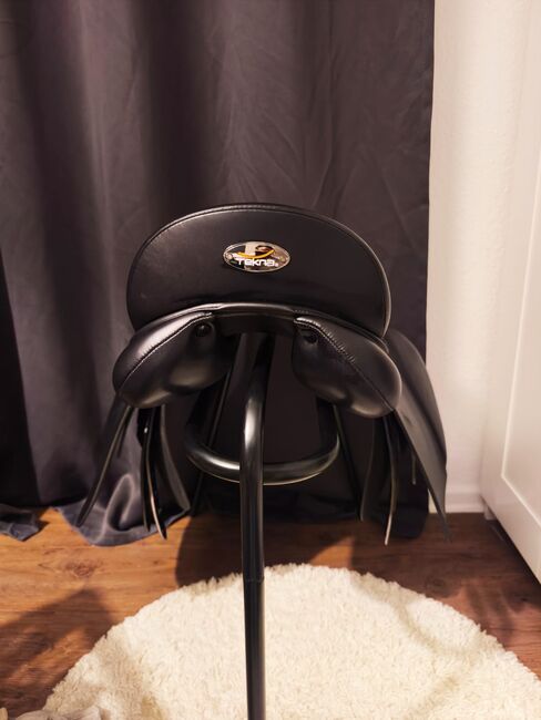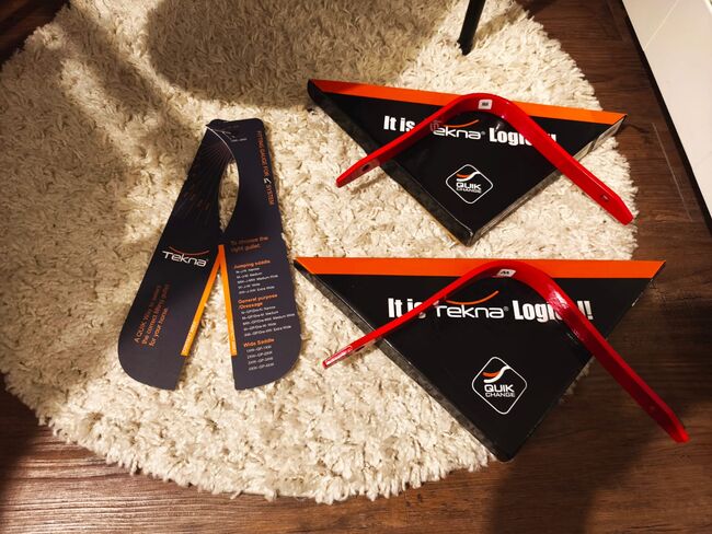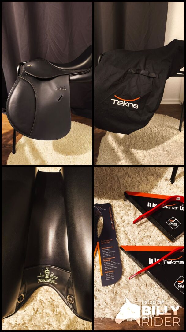 Tekna Sattel, laut Beschreibung ist es ein Mischsattel vielseitigkeits betont Dressur sprich er hat einfach nur ein tieferen Sitz, er ist in einem sehr guten Zustand, man kann problemlos das kopfeisen selbst austauschen, es ist das xw kopfeisen verbaut, ich gebe das mw und das w kopeisen mit plus Schablone und Schraubenschlüssel, ich habe den Sattel 2023 gekauft, ich fand ihn erstaunlich leicht und gut zu sitzen 😊