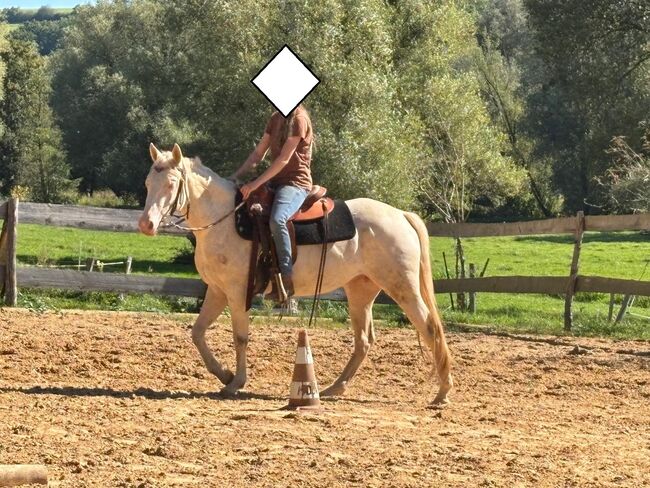 TJ Twisten Sassy - eine bildschöne Quarter Horse Stute mit seltener Cremello-Farbe, geboren am 21.06.2022. Sie bringt nicht nur ein attraktives Erscheinungsbild mit, sondern überzeugt auch durch ein korrektes Gebäude, ein gutes Fundament und eine erstklassige Reining-Abstammung, die sie zu einem echten Top Prospect für den Sport macht. Mit einem zu erwartenden Endmaß von ca. 150-152 cm wächst sie im Herdenverband auf und kennt 24-Stunden-Weidehaltung. Sie wurde mit viel Ruhe und Sorgfalt aufgezogen, durfte in ihrem Tempo reifen und zeigt sich heute als gesunde, robuste Jungstute. Über ihre Eltern ist sie 5-Panel n/n, regelmäßig geimpft und entwurmt und zeigt sich beim Tierarzt und Hufschmied brav und unkompliziert. Sassy hat einen freundlichen, menschenbezogenen Charakter. Sie ist umgänglich, aufmerksam, anständig, manchmal auch mit einem kleinen Schuss jugendlicher Frechheit - was sie umso liebenswerter macht. Ihre gute Erziehung und das solide Umfeld spiegeln sich in ihrem Verhalten deutlich wider. Seit Kurzem befindet sie sich im Beritt und ist bereits angeritten. Dabei zeigt sie Talent, Rittigkeit und schöne Bewegungen - eine hervorragende Grundlage für Reining, Ranch Riding oder andere Western-Disziplinen. Sie ist ein ganz braves junges Pferd, welches sich hervorragend unterm Reiter entwickelt hat. TJ Twisten Sassy vereint Ausstrahlung, Qualität und Perspektive - ideal für alle, die ein besonderes Nachwuchspferd mit Sportpotenzial und Charakter suchen.