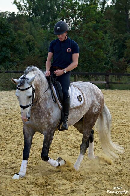 Er ist ein karakterstarkes Pferd mit viel Sensibilität und Power. Ob Dressur, Springen, Ausreiten oder einfach Bodenarbeit, er ist immer bei allem 100% dabei. Er kennt alle wichtigen Dressurlektionen. Piaffe, Passage und spanischer Schritt ist selbstverständlich.