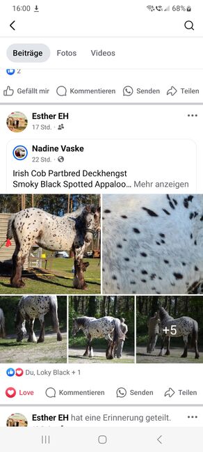 Gebe wegen Verkleinerung meine tragende Stute ab. Sie ist am 01.01.2018 geboren, sie ist ca. 150cm momentan groß und sehr kräftig. Sie ist geritten und gefahren. Sie ist tragend für 2026 wird noch per Ultraschall untersucht, der Papa ist ein Irish Cob Partbred Smoky Black Appaloosa Spotted ( auf dem letzten Bild, mit 2 Jahren 150cm groß).