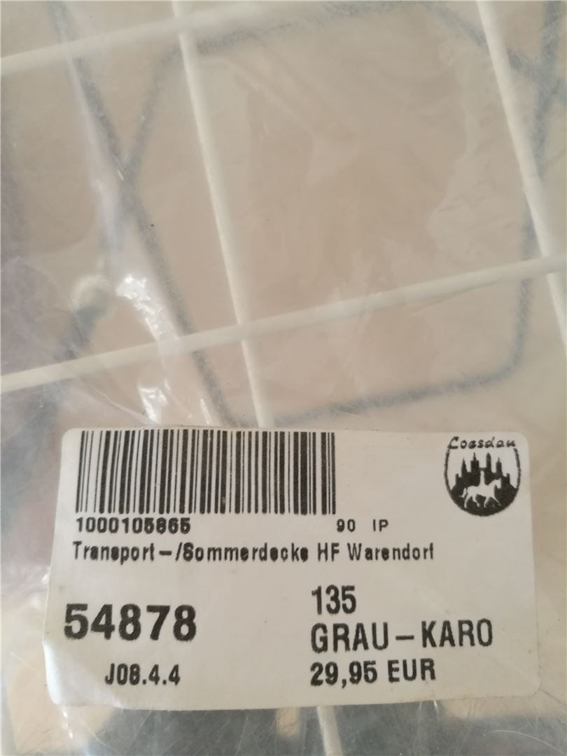 Neuwertige Transport- und Sommerdecke von Horse friends by Loesdau. Gr. 135, grau-karo.