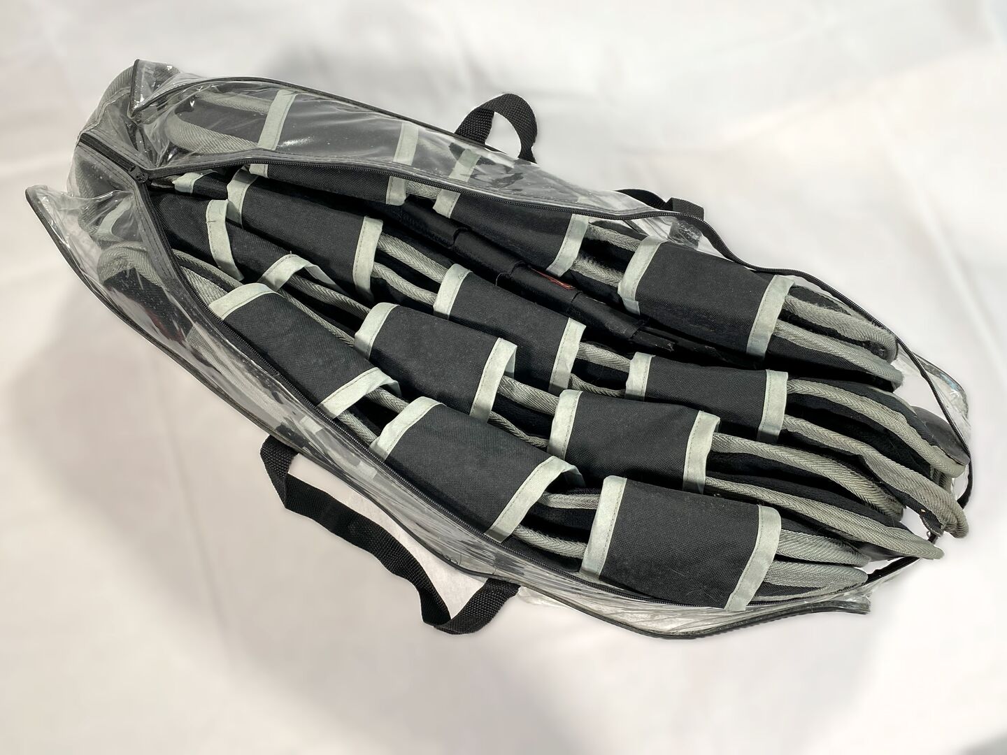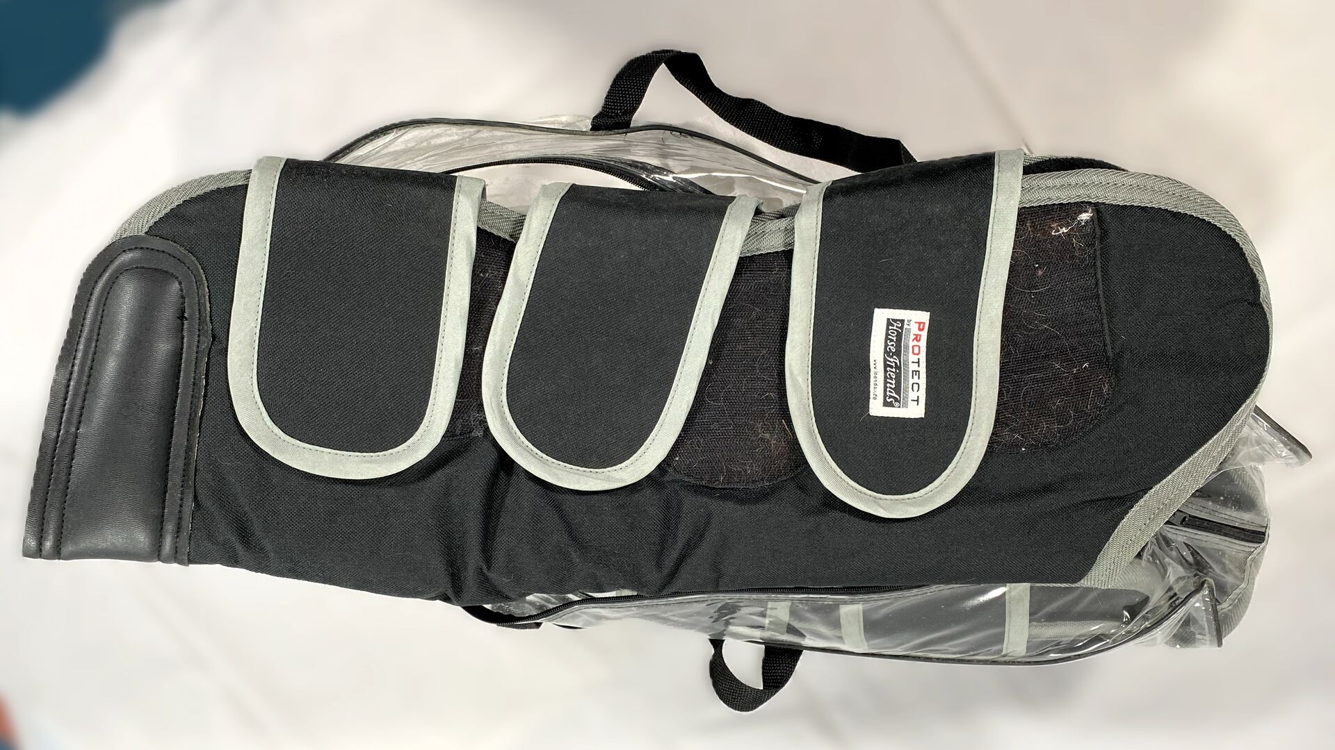 "Anatomisch geformte Transportgamaschen aus strapazierfähigem, reißfestem Material, das atmungsaktiv und wasserabweisend ist. Mit weicher Polsterung um Scheuerstellen vorzubeugen. Problemlose Anpassung und optimalen Halt."