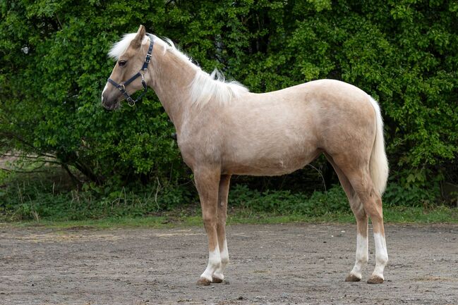 MB Maggun Chic Again ist eine bildhübsche Quarter Horse Stute, geboren am 30.04.2025, in der begehrten Farbe Palomino. Mit einem voraussichtlichen Endmaß von ca. 150 cm vereint sie moderne Proportionen mit einem sehr korrekten Körperbau und guter Bemuskelung. Ihr ausdrucksstarkes Gesicht und ihre tolle Farbe machen sie zu einem echten Eyecatcher. Die Stute ist gesund (inkl. 6-Panel-Test), regelmäßig entwurmt und geimpft und kennt bereits Tierarzt sowie Hufschmied. Sie wächst im Herdenverband auf, steht in Offenstallhaltung und genießt im Sommer täglichen Weidegang. Eine hochwertige Fütterung inklusive Mineralfutter unterstützt ihre optimale Entwicklung. Charakterlich überzeugt sie durch ihr besonders liebes und menschenbezogenes Wesen. Sie zeigt sich verschmust, aufgeschlossen und neugierig, dabei stets freundlich und sehr sanftmütig. Ihre gute Lernbereitschaft macht sie zu einem angenehmen Partner für die weitere Ausbildung. Sie ist halfterführig und kennt das Fohlen-ABC, sodass Hufe geben, Putzen und der tägliche Umgang problemlos sind. Dank ihrer erstklassigen Abstammung (Gunner Dun It Again x Magnum Chic Dream) entspricht sie genau dem Typ, der im heutigen Reining-Sport gefragt ist. Sie bringt beste Voraussetzungen mit, um sich zu einem hochwertigen Reining-Prospect für ambitionierte Non-Pro- oder Open-Reiter zu entwickeln. Gleichzeitig ist sie aufgrund ihrer Abstammung auch für Züchter äußerst interessant.