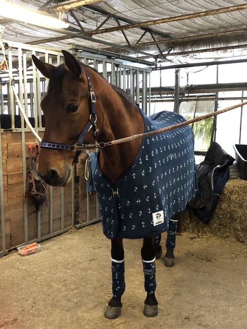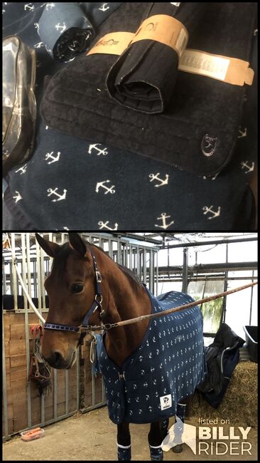 Biete hier ein tolles Set bestehend aus Abschwitzdecke (145 cm) mit passenden Bandagen und Bandagierunterlagen (neu). Decke und Bandagen waren 1x auf dem Pferd. Wir haben festgestellt, dass wir keine „Bandagentypen“ sind und zum Rumliegen ist das Set zu schön,