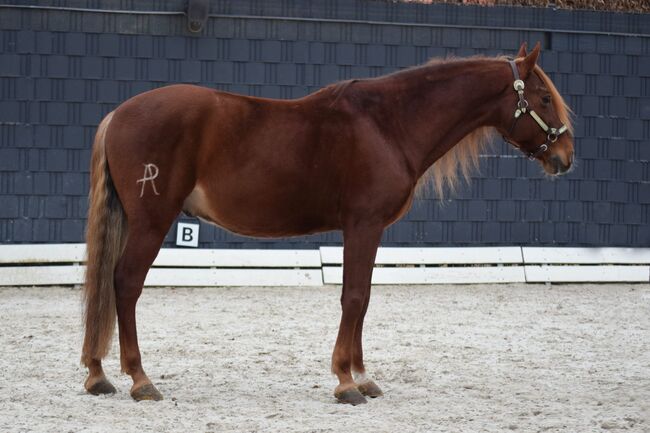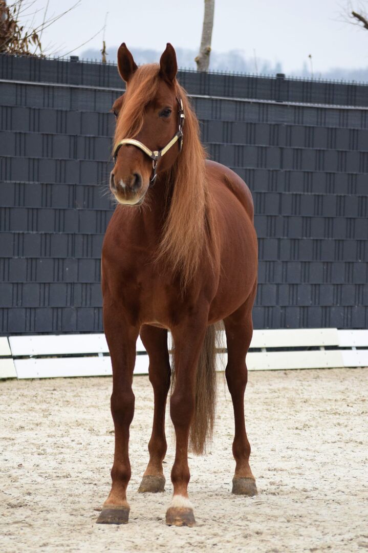 Zum Verkauf steht ein bildhübscher Pura Raza Española x Lusitano Wallach, geboren 8.2016, mit einem Stockmaß von ca. 163 cm und in der schönen Farbe Fuchs. Er ist ein echter Eyecatcher mit korrektem, kompaktem Gebäude und befindet sich in einem sehr guten Gesundheitszustand. Top Röntgenbilder liegen vor, er ist regelmäßig geimpft und entwurmt und kennt Boxenhaltung mit Paddock. Charakterlich ist er ein absolutes Goldstück: sehr menschenbezogen, unheimlich verschmust, superlieb im Umgang sowie freundlich, unerschrocken, neugierig und aufgeschlossen. Im täglichen Handling ist er jederzeit angenehm und unkompliziert. Unter dem Sattel überzeugt er mit sehr guten Grundgangarten, insbesondere mit einem außergewöhnlich starken Trab. Er ist sehr talentiert, lernwillig und vielseitig ausgebildet, lässt sich ganz toll versammelt reiten und bringt unheimlich viel Spaß. Er beherrscht fliegende Wechsel, alle Seitengänge, Passage und Piaffe und zeigt sich auch im Gelände superartig und zuverlässig. Befindet sich zur Zeit in Beritt. Dieses wunderschöne und bestens ausgebildete Pferd eignet sich ideal für den motivierten Reiter, der ein besonderes Pferd für Dressur, Working Equitation oder den gehobenen Freizeitsport sucht. Ein echtes Traumpferd mit großem Potenzial und bestem Charakter.