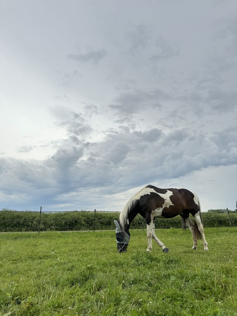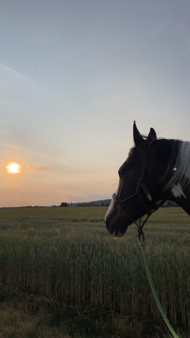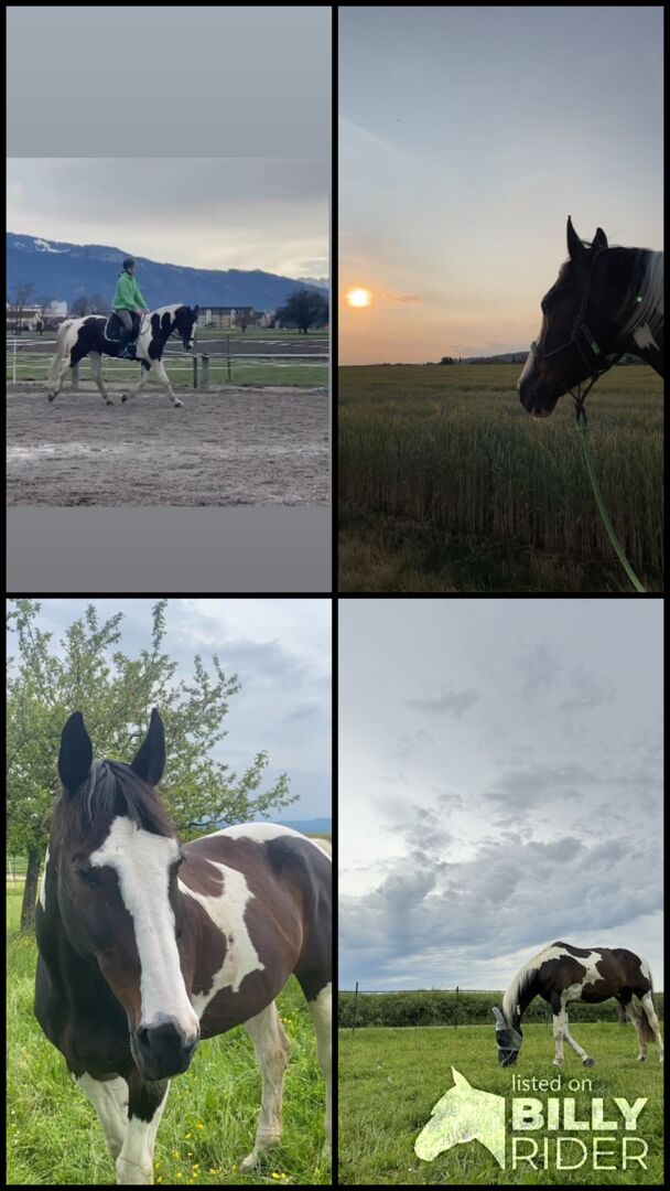 Traumschecke abzugeben! Ich gebe meinen 16Jährigen Junggebliebenen Warmblut-Wallach ab. Somi ist ein kleines Projekpferdchen und für jemanden geeignet der Freude an der Arbeit mit Pferden hat und gerne auch mal etwas mehr Pepp unterm Hintern hat. Aus Zeitmangel kann ich seiner Arbeitsfreude einfach nicht mehr gerecht werden, weswegen ich für ihn nun auch ein neues Zuhause suche. Somi ist ca. 1.60cm und vorne beschlagen. Er steht in einem Offenstall in einer Wallachherde wo er sich rangniedrig zeigt. Somi kennt und liebt die Frei/Bodenarbeit. Er ist eingeritten, wird von mir jedoch wenig geritten, hat aber durchaus freude an kleineren Sprüngen und ein paar Hufschlagfiguren. Im Gelände waren wir schon länger nicht, da ich ihm die Nötige Sicherheit leider nicht bieten kann. Wenn Somi Ihr Interesse geweckt hat, kontaktieren Sie mich doch gerne VK: 2🥕🥕🥕 (verhandelbar) PLZ: 8558
