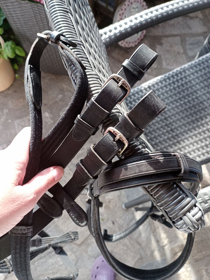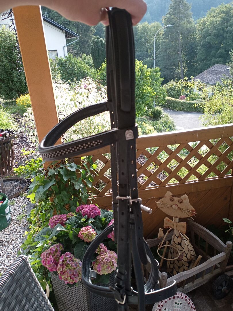 Wunderschöne Trense von Cavallo, Stirnriemen mit Strasssteinen. Weiches Leder, da immer gut gepflegt. Inklusive Zügel
