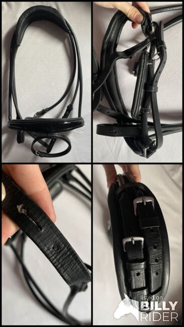 Hallo, ich verkaufe hier eine nur anprobierte Trense in Größe wb. Sie hat einen kleinen Schönheitsfehler siehe letztes Bild. SIE IST NEU deswegen auch der Preis. Np 120€ Rundgenäht, Genick verschnallung, Lack. OHNE Zügel und Stirnriemen.