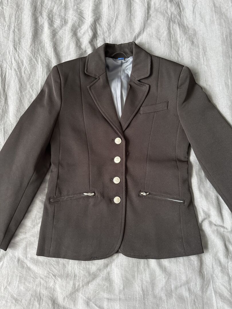 Erleben Sie stilvolle Eleganz und Komfort mit dem Turnierjacket von 4 Riders in der Größe 128, ideal für junge Reitsportbegeisterte. Dieses hochwertige Kleidungsstück in klassischem Schwarz ist ein Must-have für jede Reitausrüstung und besticht durch seine zeitlose Ästhetik. Es bietet optimale Passform und Bewegungsfreiheit, sowohl beim Training als auch bei Wettbewerben. Ein unverzichtbares Accessoire, das Funktionalität und modisches Design gekonnt vereint.