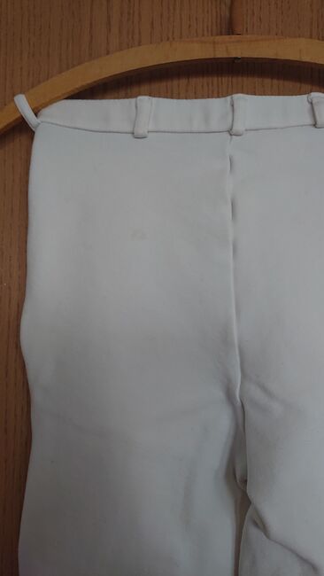 Turnierreithose von Equlibre (von Krämer), Umfang am Bund ca 62/63 cm, also kleine XS. Nur einmalig für Reitabzeichenprüfung getragen. Frisch gewaschen, dennoch leider je vorne und hinten kleine Flecken (siehe Bilder), ansonsten einwandfreier Zustand.