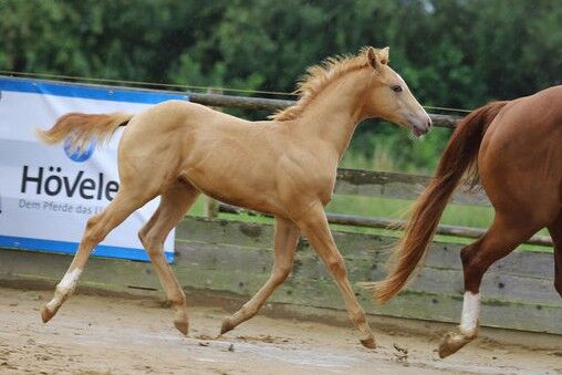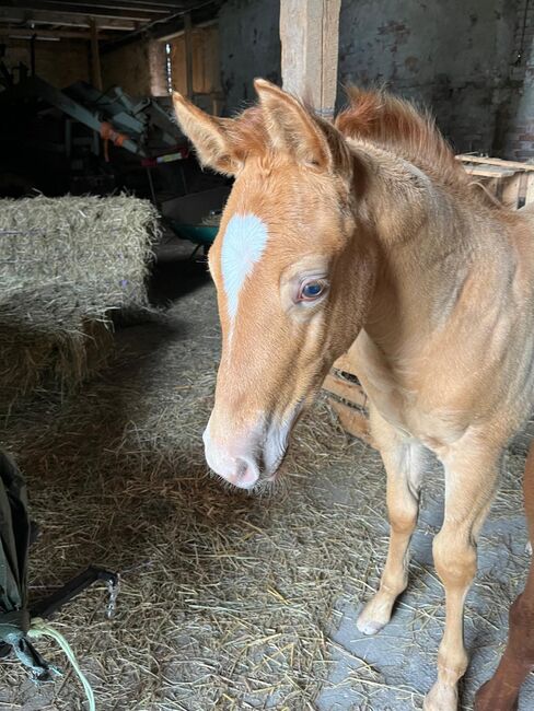 Triple Fire Boy - ein bildschöner Quarter Horse Wallach in der außergewöhnlichen Farbe Golden Champagne, geboren am 21.04.2025. Mit einem geschätzten Endmaß von ca. 150-155 cm, seinem kompakten, korrekt gebauten Körper und der tollen Bemuskelung ist er ein echter Hingucker mit sportlichem Potenzial. Kein Wunder, dass er nicht nur als 1a-Prämienfohlen ausgezeichnet wurde, sondern auch Reservesieger beim DQHA Fohlenchampionat 2025 ist. Dieser junge Wallach wächst artgerecht im Herdenverband auf großzügigen Koppeln auf und zeigt dabei einen entspannten, menschenbezogenen Charakter. Er ist verschmust, nervenstark und neugierig - gleichzeitig lernfreudig und bewegungsfreudig mit einem ausgeglichenen, aufgeweckten Temperament. Er wird täglich im Umgang gefördert, kennt Tierarzt, Hufschmied, Anhängerfahren und geht bereits als Handpferd mit ins Gelände. Halfterführigkeit, Hufegeben und Putzen sind für ihn selbstverständlich. Triple Fire Boy ist gesund, 5-Panel sowie MYHM n/n getestet, regelmäßig entwurmt und wird bei Abgabe altersgerecht geimpft übergeben. Der Farbtest liegt ebenfalls vor. Seine gute Abstammung lässt keine Wünsche offen - kombiniert mit seinem exzellenten Charakter und seinem Potenzial in verschiedenen Disziplinen eignet er sich sowohl für den Sport- und Turniereinsatz als auch als späterer Freizeitpartner. Ob Show oder Sattel - Triple Fire Boy bringt alles mit, was man sich von einem vielseitigen Quarter Horse Nachwuchs wünscht. Er wird mit vollständigen AQHA-Papieren und Equidenpass in fördernde Hände abgegeben. Zum Angebot des Anbieterslaunch
