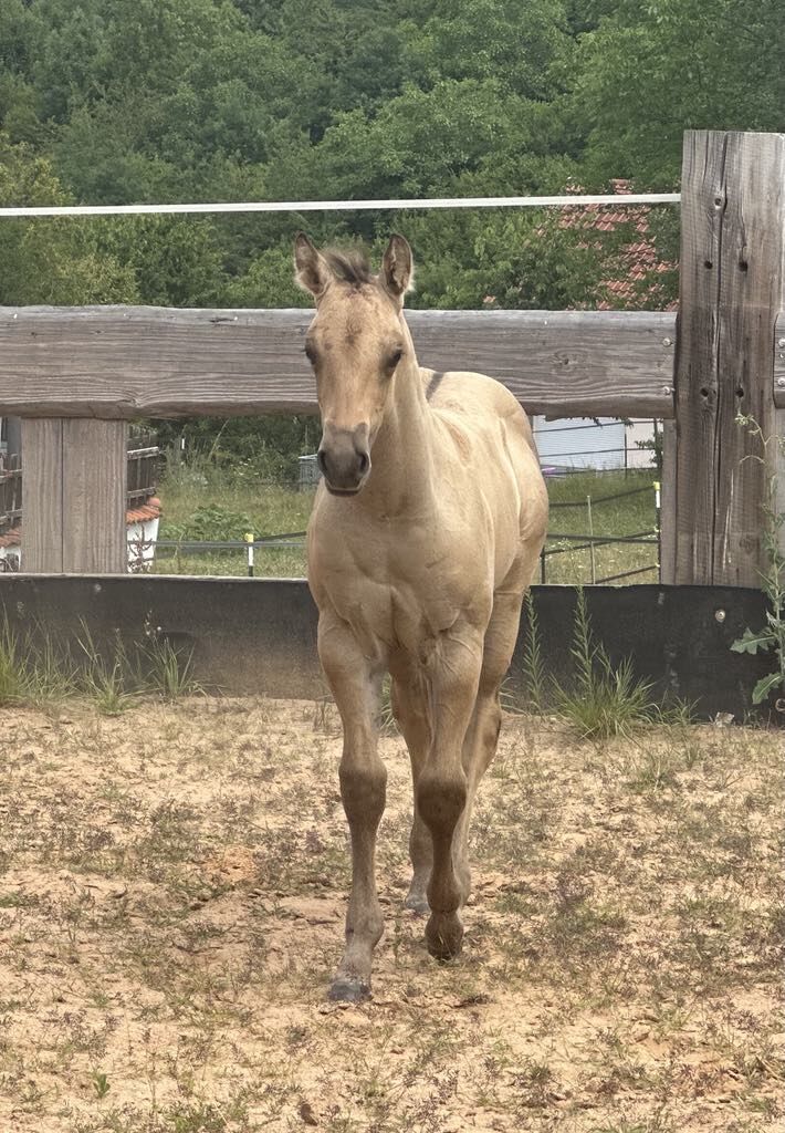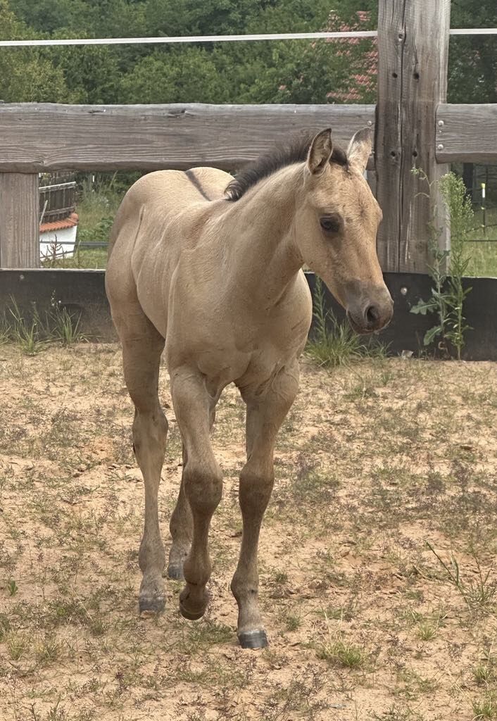 Roosters Bexx On Ice - bildhübsches dunskin Quarter Horse Fohlen (5.25 geboren, voraussichtliches Endmaß ca. 150 cm) bringt alles mit, was man sich von einem Nachwuchspferd wünscht: Ein korrekter, kompakter und kräftiger Körperbau, eine gute Bemuskelung und ein gesundes Fundament machen es zu einem echten Allround-Talent mit Zukunft. Der kleine Charmeur wächst artgerecht im Herdenverband mit anderen Fohlen auf und wird täglich liebevoll gehändelt. Bexx zeigt sich durchweg menschenbezogen, verschmust, brav und unkompliziert - einfach ein Schatz im täglichen Umgang. Er liebt seine Kuscheleinheiten und bleibt dabei stets cool und freundlich. Bei Abgabe: geimpft, regelmäßig entwurmt, kennt Tierarzt & Hufschmied. Toller Beweger - ideal für Freizeit und mehr. Ein Nachwuchspferd mit viel Herz, Qualität und Potenzial - ideal für Menschen, die einen unkomplizierten, talentierten Partner fürs Leben suchen. Zum Angebot des Anbieterslaunch