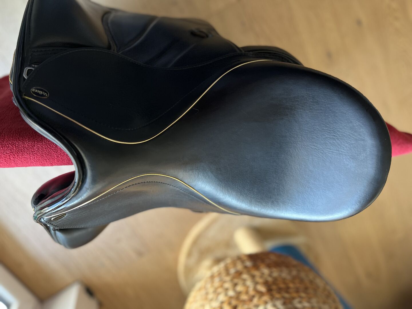 Dressursattel der Marke Velicea. Sitzgröße 17,5.