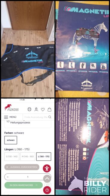 Wie neu , nur 5x benutzt wegen Pferdeverkauf abzugeben. Gr. L Inklusive Bedienungsanleitung. Die Magnetotherapie ist eine medizinische Methodologie, die mit Hilfe von Magnetfeldern Pathologien behandelt. Durch die Magnetfelder wird der Mikro-Blut- und Lymphkreislauf, der Austausch und die Nutzung der Nährsubstanzen seitens der Zellen und die natürlichen biologischen Abwehrkräfte und die Eliminierung der Stoffwechselschlacken erleichtert und gefördert. Zusätzlich wird mit Hilfe der Magnetfelder eine erhebliche Verbesserung bei Entzündungsprozessen erzielt. Die Besserung ist sowohl durch eine Reduzierung des Entzündungsprozesses als auch durch eine gleichzeitige schmerzlindernde Wirkung gegenüber den Nervenfasern des Gewebes bedingt. Außerdem regt sie eine bessere Durchblutung an, entspannt den Muskel und lindert Schwellungen. Die Produktion von Elastin und Collagen wird angeregt, welche zum Wiederaufbau des Gewebes wichtig sind.