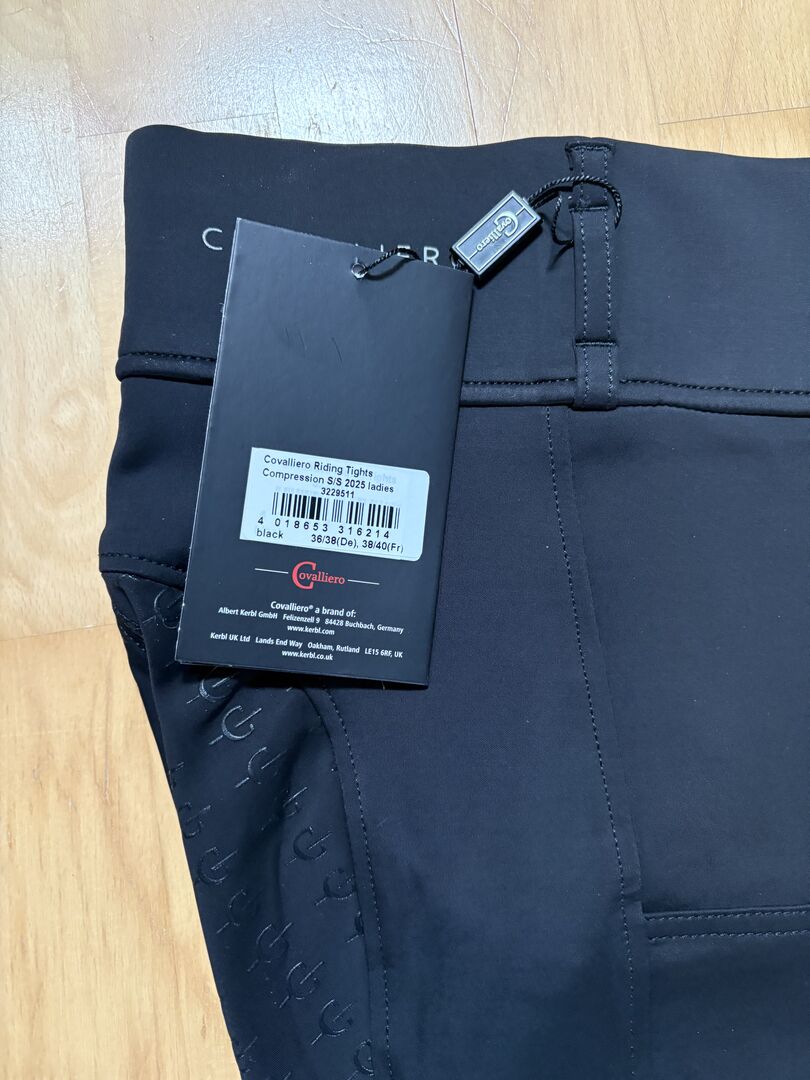 Reitleggings mit Mesh Einsatz Compression von Covalliero, Vollbesatz, Farbe: schwarz, Größe S (36/38), die Reitleggings ist Neu und Unbenutzt mit Etikett, da ich keine Leggings mehr trage, siehe Photos.