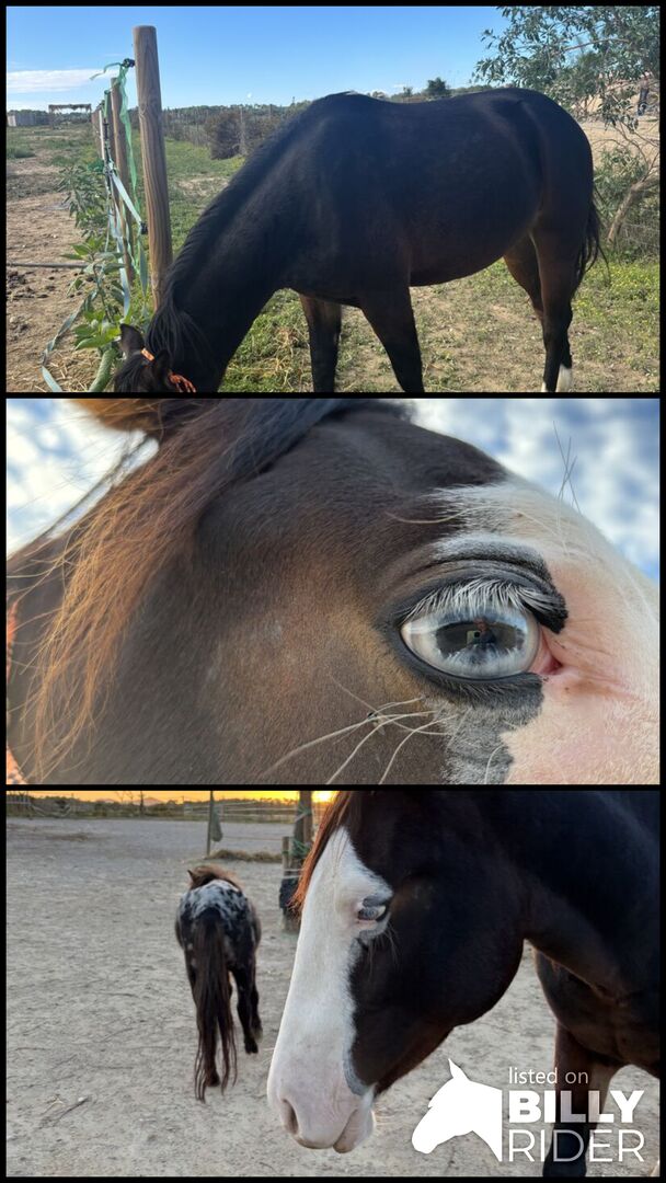 Optisch überzeugt er durch seine seltene dunkelbraune Farbe, das markante Gunner-Gesicht und zwei blaue Augen – ein echter Blickfang in jeder Reitanlage.