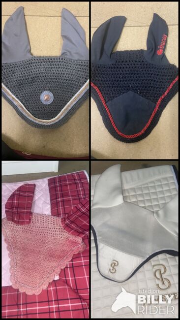 Hallo zusammen, Ich verkaufe verschiedene Fliegen Ohren. Ich hab zu viele und möchte mir etwas da zu verdienen. Jede dieser Fliegenohren ist in der Größe Full. Zu der Ps of Sweeden Fliegenohren habe ich in Dressur auch noch eine Schabracke. Ebenfalls zu der Pinken die Schabracke ist auch Dressur. Ich würde mich sehr freuen wenn sie sich melden falls sie Interesse haben. Die Preise sind unterschiedlich. Lg