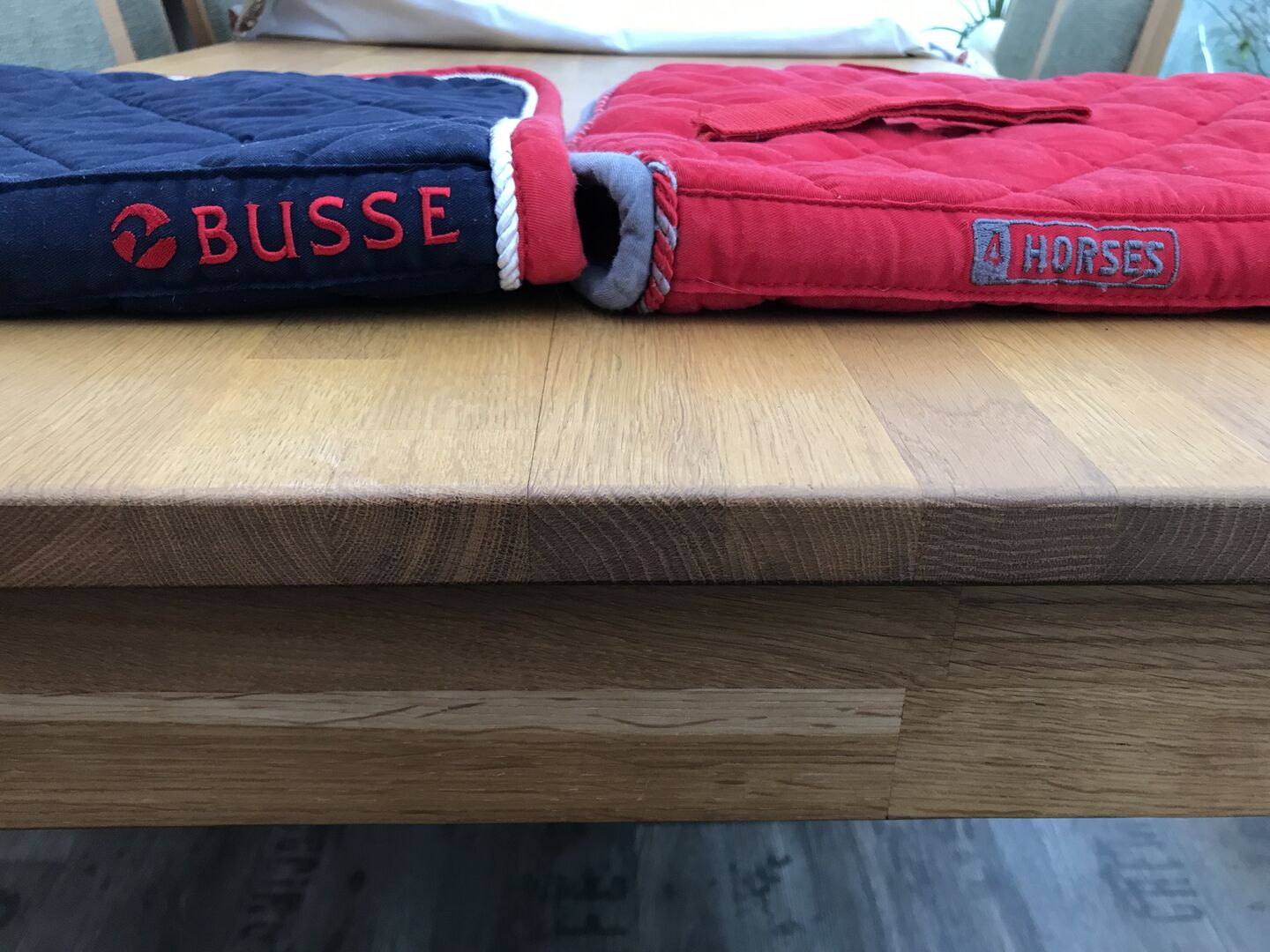 Blaue Schockemöhle: WB Dressur, kaum genutzt, sehr gut erhalten 23€ / Verkauft Rote for Horses: WB Dressur, kaum genutzt, sehr gut erhalten 20€ Graue und Beige: WB Springen, Gebrauchsspuren vorhanden, 5€ pro Stück, kann auch geschenkt werden beim Kauf von den anderen beiden.