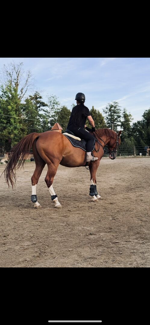 Auf dem Vorbereitungsplatz zeigt er sich teilweise noch etwas nervös und braucht einen sicheren, ruhigen Reiter. Daher kein Anfängerpferd.