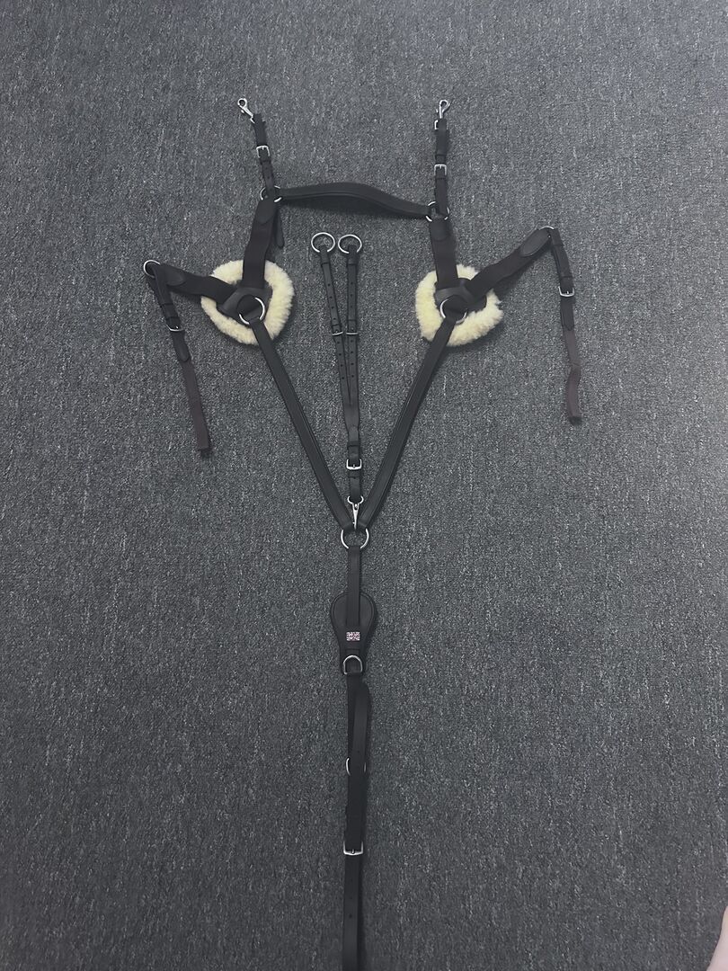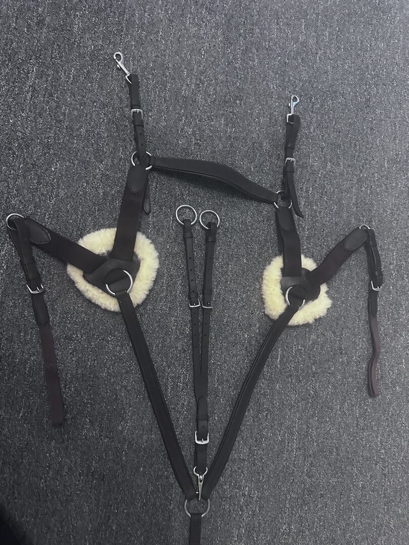 Verkaufe sehr gut erhaltenes Vorderzeug. Neupreis 94,90 Sieht fast aus wie neu. Felle sind gewaschen und mit Klett versehen. Farbe braun und Größe WB. Vielfach verstellbar.