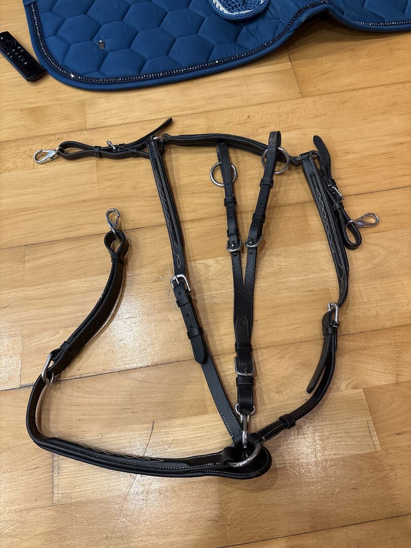 Ich verkaufe ein Vorderzeug in der Größe Pony . Farbe: Schwarz mit weißen Nähten • Hochwertiges Leder, sehr stabil • Kaum Gebrauchsspuren, gepflegter Zustand • Mit Karabinern zum einfachen Befestigen