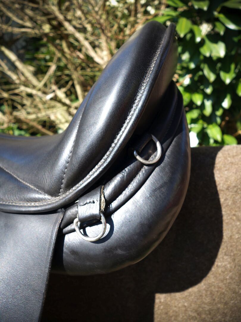 Vorne hat der Sattel jeweils rechts und links einen kleinen D-Ring und hinten jeweils 2 D-Ringe um Satteltaschen anzubringen.