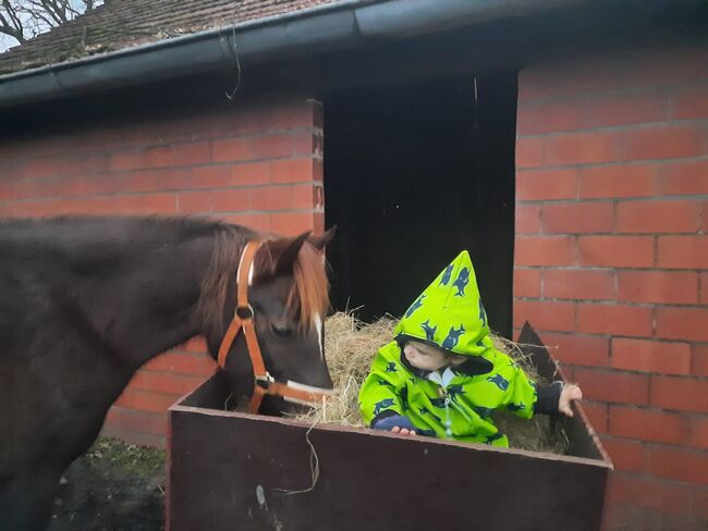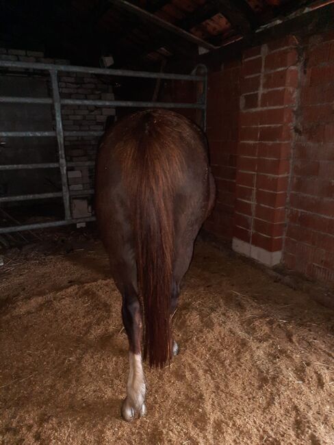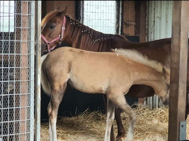 Wir geben unsere Welsh b Verbandsprämien Zucht-Stute ab, sie ist eingetragen im Stutbuch 1 des ZfdP stutbuch welsh B. Nur in gute Hände, da sie ein Herz aus Gold hat und ihre Mutterrolle super positiv absolviert...sehen wir sie sehr gerne in der zucht für weitere tolle nachkommen. Balade hat uns letztes Jahr ein prämiertes Stut Fohlen geschenkt. Wir wollten sie einfahren lassen aber dafür eignet sie sich nicht. Sie nimmt problemlos auf auch das Abfohlen fällt ihr leicht und ohne Hilfe/problemlos. Gegenüber den Menschen ist sie etwas zurückhaltend, immer respektvoll und freundlich. Keine typische Zicke (wie Stuten gerne sind, sondern sehr Freundlich). Läßt sich Problemlos verladen, führen und longieren (Schritt und trab). Sie steht brav in der Box und kennt auch box mit Padock so wie 24/7 draußen..Also alles möglich. In der Herde ist sie eher rangnieder, geht Ärger aus dem Weg und ist sehr sozial und unproblematisch mit anderen Stuten und Wallache in jedem alter. Wir haben sie ende 2024 tragend für 2025 liefern lassen, aus Bayern von einen Welsh b Gestüt. Sie fohlte 2025 ohne Komplikationen und ohne Hilfe zügig ab und kümmerte sich super um Ihre Tochter, auch hierbei immer vorbildlich und freundlich dem Menschen gegenüber, auch zur fohlenshow war sie super entspannt im fremden Stall und das Fohlen wurde Premiert. (Fohlen nicht zur Abgabe) Für 2026 nicht belegt. Sie wurde bei uns Longiert und versucht an sattel und Geschirr zu gewöhnen aber das gefiel ihr nicht so gut. Aus diesen Grund geben wir sie ab. Keine Erkrankung bekannt. Gesund und Robust gehalten. In beste Hände abzugeben.